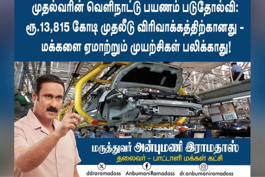 ஜெர்மனி மற்றும் இங்கிலாந்து நாடுகளில் மேற்கொண்ட பயணங்களின் போது, ரூ.15,516 கோடி முதலீடுகள் ஈர்க்கப்பட்டிருப்பதாகவும், அதன் மூலம் 17,613 பேருக்கு வேலைவாய்ப்புகள் கிடைக்கும் என்றும் முதலமைச்சர் மு.க.ஸ்டாலின் அவர்கள் கூறியிருக்கிறார். முதலீடுகளின் அளவு மிகக் குறைவு என்பது மட்டுமின்றி, அவற்றில் பெரும்பாலானவை ஜோடிக்கப்பட்டவை ஆகும். இயல்பாக வரக்கூடிய சிறிதளவு முதலீடுகளையும், வருவதற்கு வழியில்லாத பெருமளவு முதலீடுகளையும் தாம் ஈர்த்து வந்ததாக முதலமைச்சர் நாடகமாடுவது கண்டிக்கத்தக்கது.